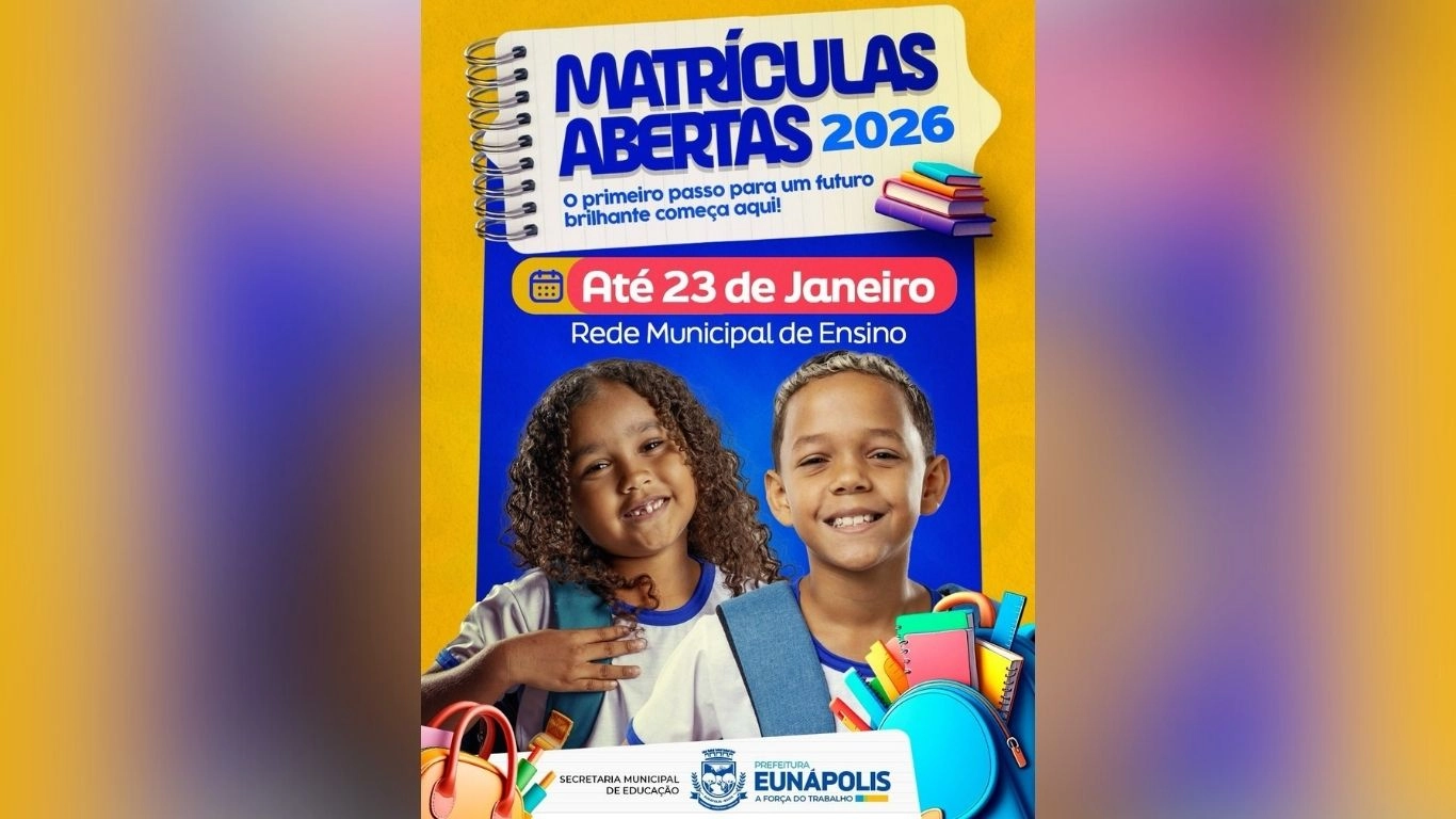 Prefeitura de Eunápolis informa que estão abertas as matrículas da rede municipal ensino para 2026