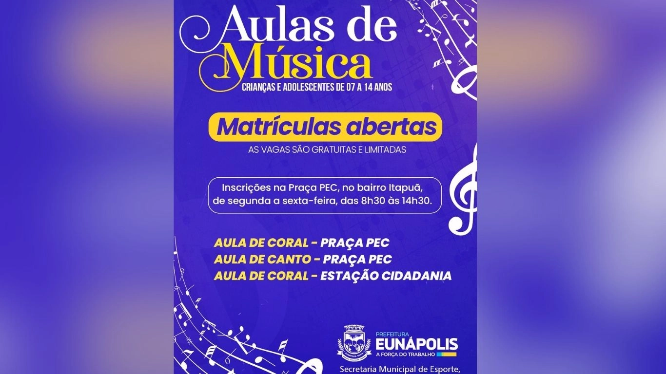 Prefeitura de Eunápolis abre inscrições para oficinas gratuitas de coral e canto para crianças e adolescentes